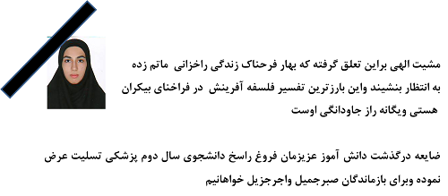 پیام تسلیت به مناسبت درگذشت دانش آموز عزیزمان فروغ راسخ
